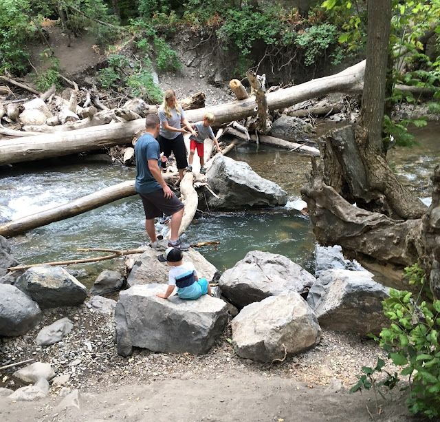 We had Family Home Evening in the mountains last night. It was so fun to be with Mark, Tiff and the boys. The weather was perfect. Tiff and Mark made delicious tin foil dinners. Cash and Colby played by the river and went exploring. Grey liked going for walks and sitting by the river.