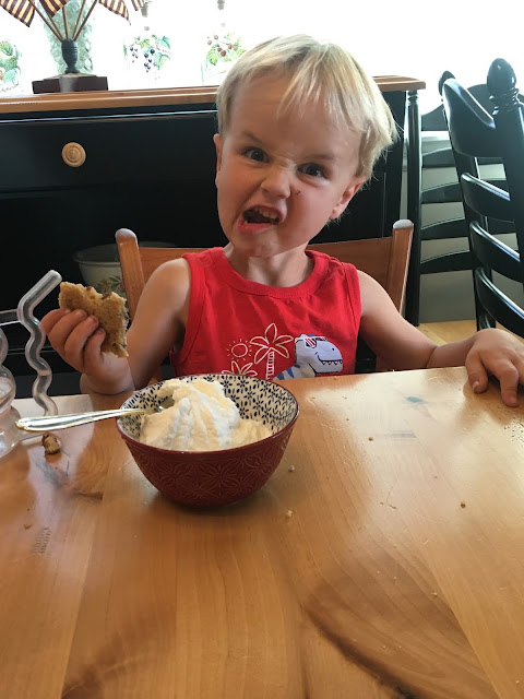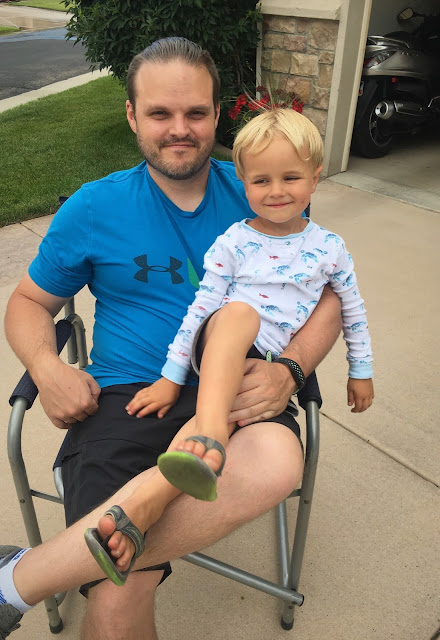 Before the party I went to get Colby for a piano lesson. I showed up a little early so I took Colby, Grey, and Grahm to swim lessons. Cash was at summer art camp. Tiffani wasn't feeling good so I was happy to help out. We got to the pool and even though it wasn't raining, swim lessons had been cancelled. So we played at the playground nearby for a bit.