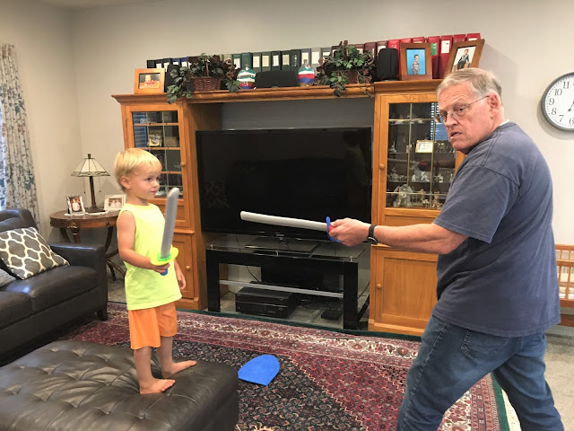 June temperature have been more like in August, hovering near 100 for several days now, and breaking records. What do you do when it a little too hot outside? You go inside, in Grandma's cool basement, and have some fun!