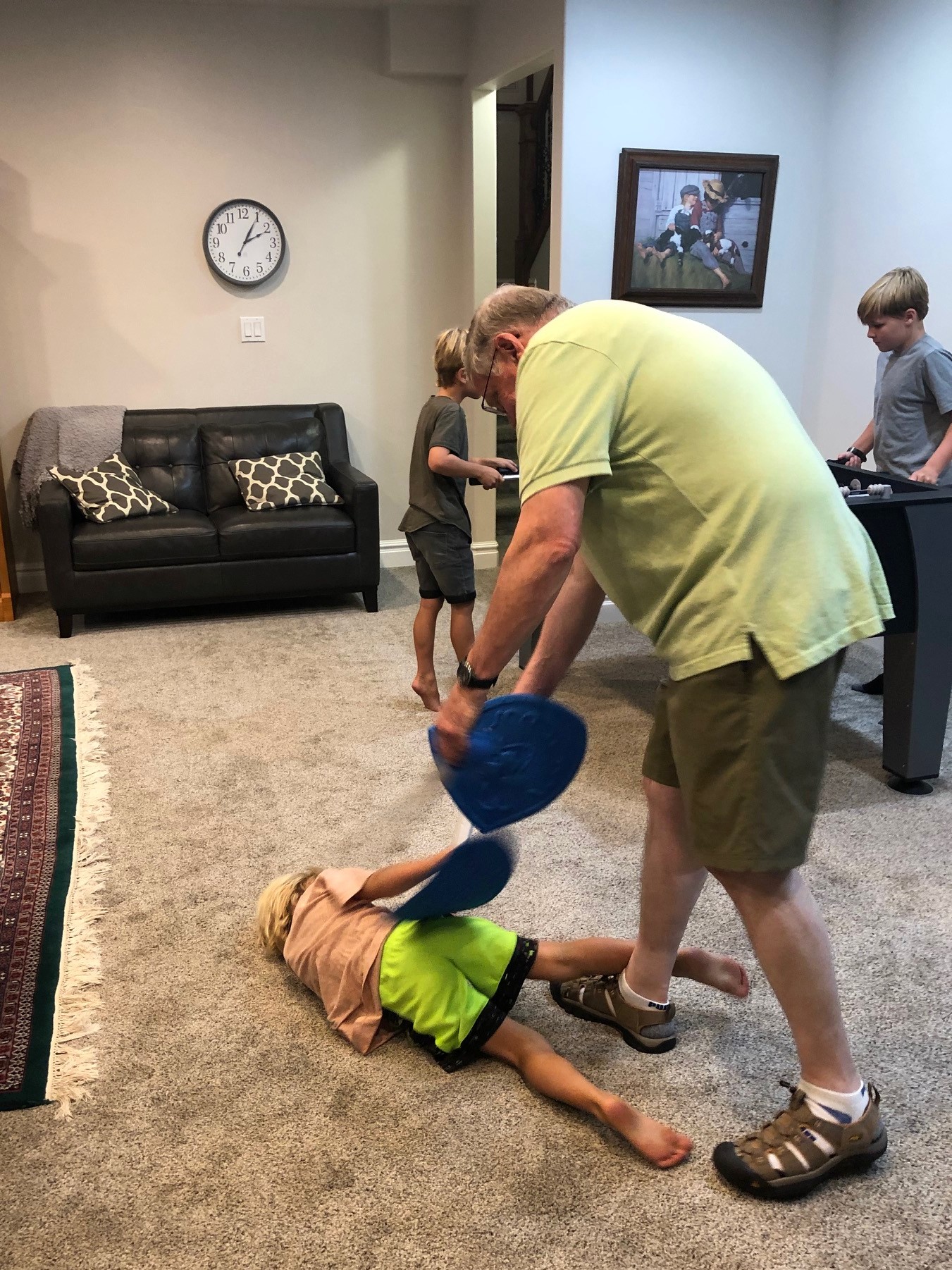 I don't think sword fighting was a pioneer activity but Grahm loves to give Grandpa a run for his money! Life really is better with our precious pioneer grandsons. We love them with all our hearts.