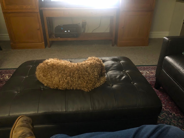 His family is off on another cruise and we are always happy to have Grizzly hang out with us. He is so obedient and sweet. He helps me get my steps in each day too.